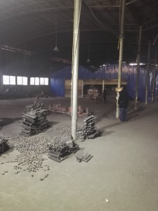 該廠于2012年建成投產(chǎn),主要工藝流程包括型砂造型、熔煉材料、合箱澆注、拋光和真空電鍍,主要原、輔材料有201不銹鋼、切邊料、螺帽芯、硅鐵、錳鐵、鎳硅(鎳鋁)、熱電偶、除渣劑、原砂、鋼丸和柴油。